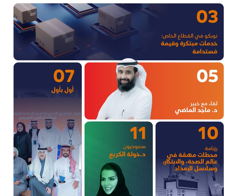 نشرة نوبكو الربع الاول 20251760476820نوبكو في القطاع الخاص خدمات مبتكرة وقيمة مُستدامة انطلاقًا من رؤيتها في تَعزيز كفاءة القطاع الصحي, تُواصِل... -